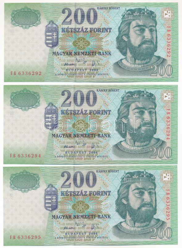 2006. 200Ft (3x) sorszámkövetők és egyugrásos sorszámkövető: "FB 6336292, FB 6336294, FB 6336295" T:I