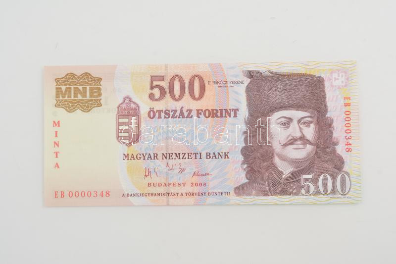 2006. 500Ft "A forradalom 50. évfordulója 1956. október 23." piros "MINTA" felülbélyegzéssel, "EB 0000348" sorszámmal T:I