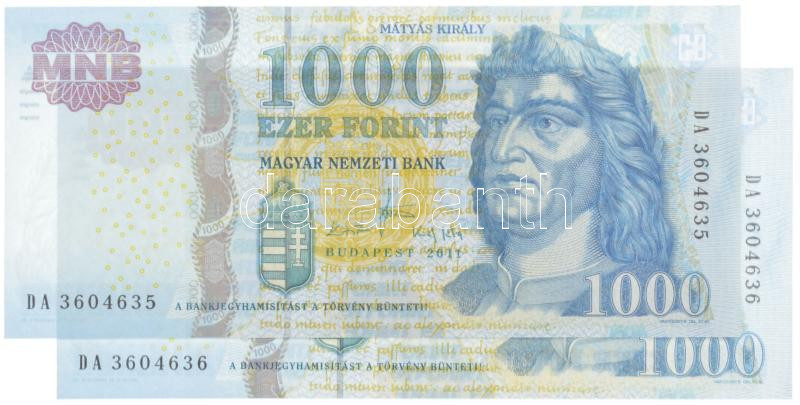 2011. 1000Ft (2x) sorszámkövetők "DA 3604635 - DA 3604636" T...