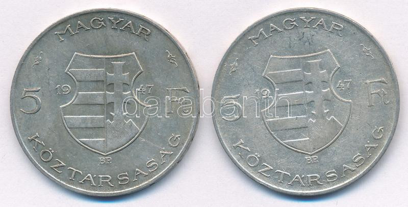 1947. 5Ft Ag "Kossuth" (2x) T:2-,3 patina