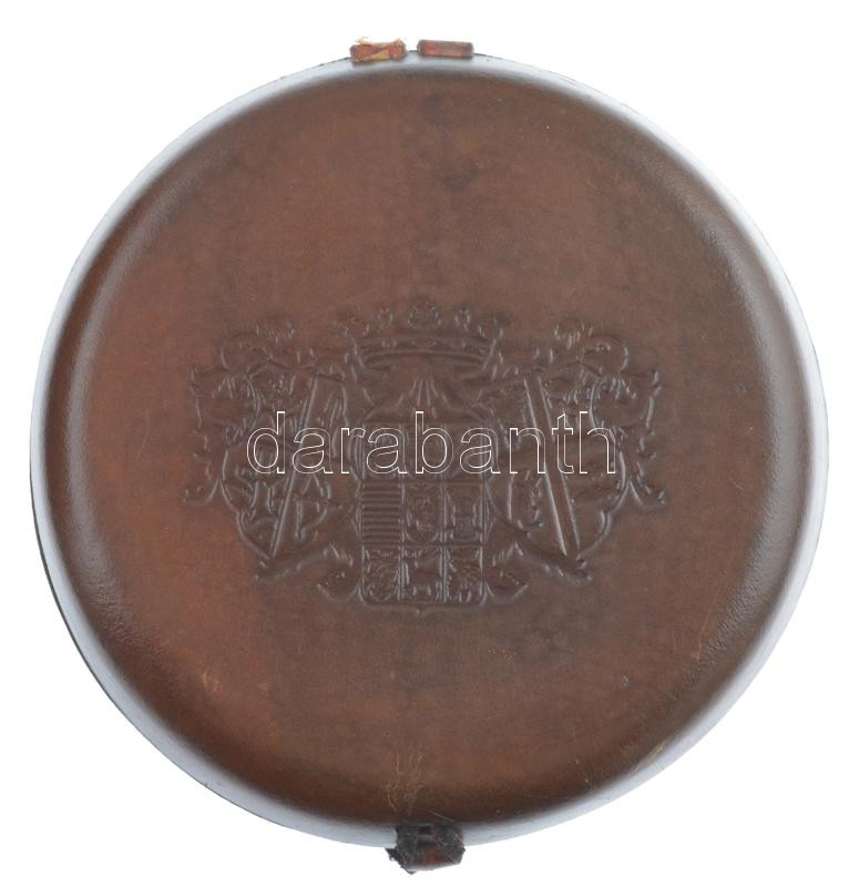 Description: Asszonyi Tamás (1942-) DN "Szabolcs-Szatmár-Bereg Megyei Közgyűlés emlékplakettje" kétoldalas, nagyalakú bronz plakett eredeti, a művész által készített és szignózott bőr dísztokban (120mm) T:1- patina