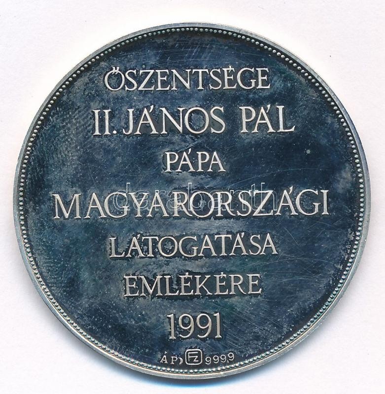 Description: Fülöp Zoltán (1951-) 1991. "Őszentsége II. János Pál pápa magyarországi látogatása emlékére 1991" Ag emlékérem dísztokban (15,73g/0.999/42,5mm) T:1- (PP) ujjlenyomatos
