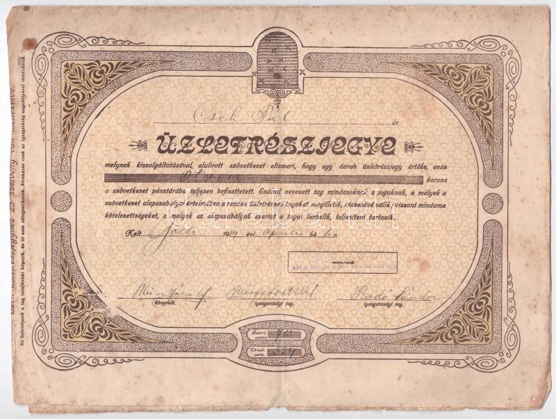 Gölle 1919. Göllei hitelszövetkezet, mint az Országos központi hitelsz... https://www.darabanth.com/en/429-Online-auction/429.0/Numismatics/Shares-and-Tickets~2000007/Golle-1919-Gollei-hitelszovetkezet-mint-az-Orszagos-kozponti-hitelszovetkezet-tagja-nevre-~II2710433