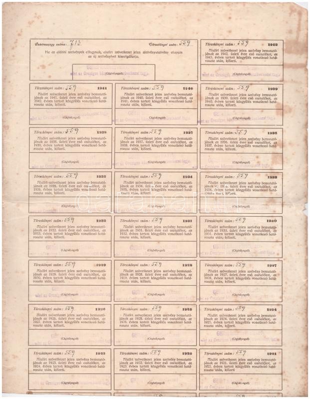 Description: Gölle 1919. Göllei hitelszövetkezet, mint az Országos központi hitelszövetkezet tagja; névre szóló üzletrészjegye 50K-ról, szelvényekkel, bélyegzéssel T:III