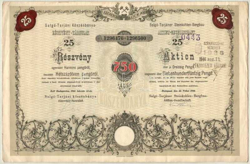 https://www.darabanth.com/en/429-Online-auction/429.0/Numismatics/Shares-and-Tickets~2000007/Salgotarjan-1944-Salgo-tarjani-Koszenbanya-Reszveny-Tarsulat-reszvenye-750P-rol-sze~II2751008