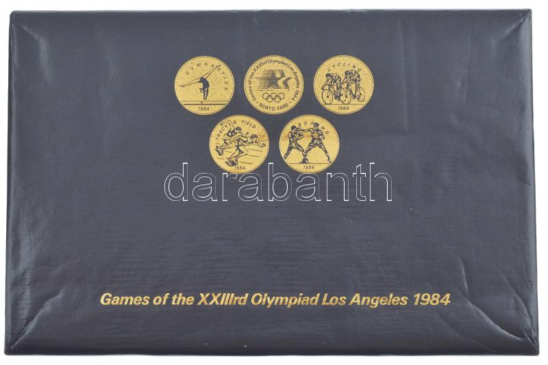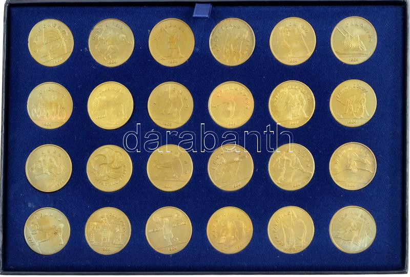 Amerikai Egyesült Államok 1984. "XXIII. Nyári Olimpiai Játékok Los Angeles 1984" az olimpiai sportágakat ábrázoló Cu emlékérem szett (24xklf) eredeti, kissé kopottas dísztokban (31mm) T:1 patina