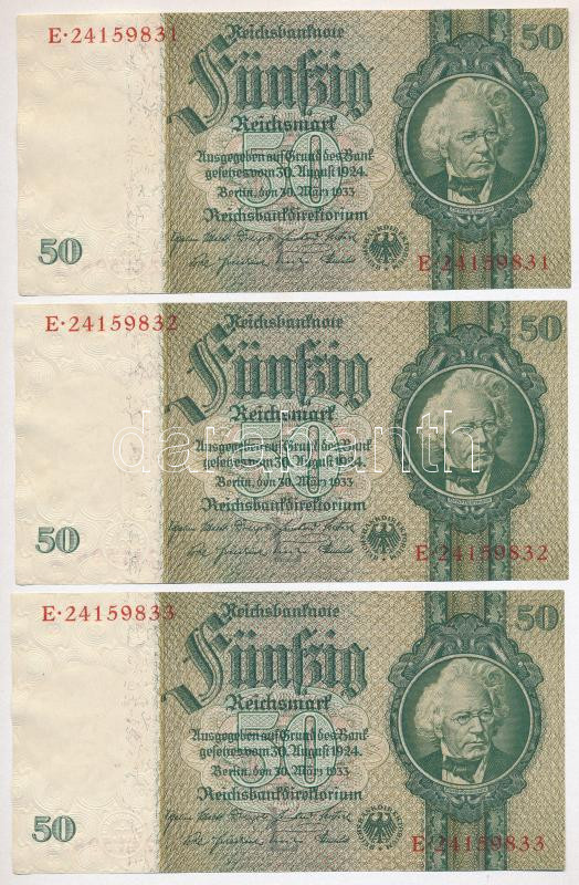 Német Harmadik Birodalom 1933. 50M (3x) sorszámkövetők T:I German Thir...