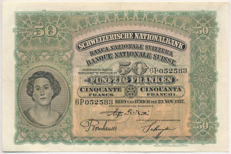 Svájc 1927. 50Fr "6P 052583" T:III szép papír Switzerland 19...