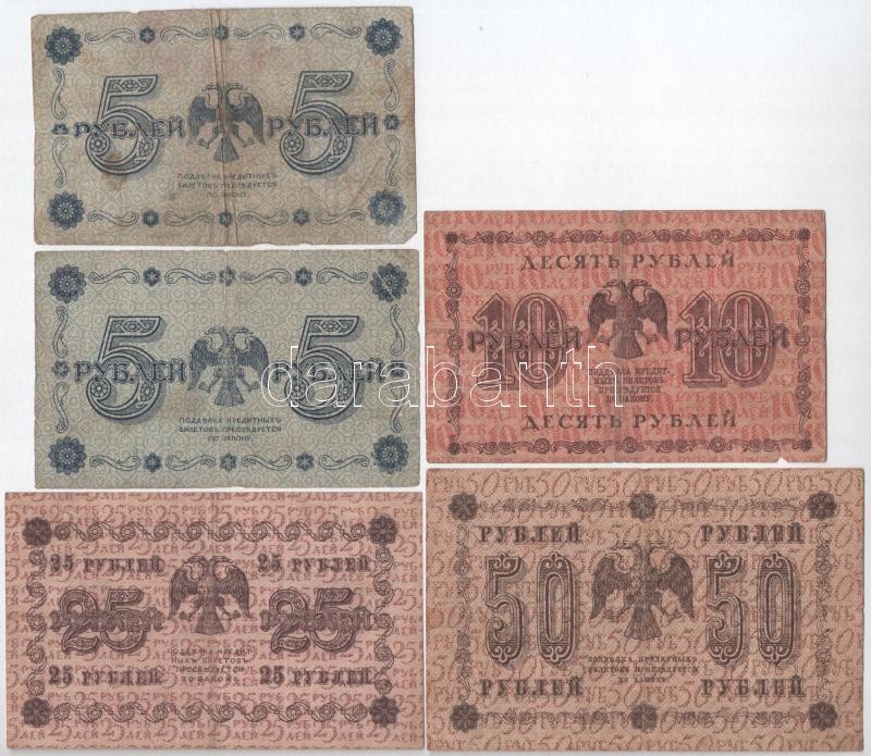 https://www.darabanth.com/en/429-Online-auction/429.0/Numismatics/Worldwide-banknotes~2000014/Szovjetunio-Orosz-Szocialista-Szovetsegi-Szovjet-Koztarsasag-1918-5R-2x-plus-10R-plus-25R-plus-50R~II2721292
