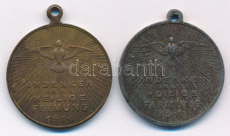Ausztria 1914. "A Szent Bérmálás Emléktárgya" kétoldalas bronz emlékérem füllel (29mm) + 1916. "A Szent Bérmálás Emléktárgya" kétoldalas Fe emlékérem füllel (29mm) T:2,2-