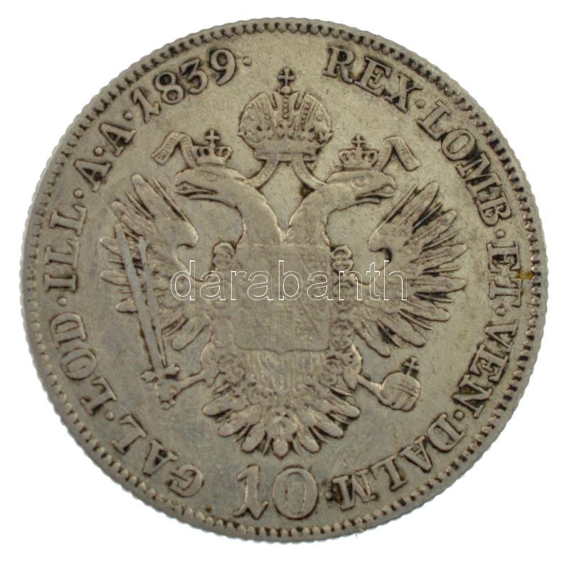 https://www.darabanth.com/en/429-Online-auction/429.0/Numismatics/Worldwide-silver-and-metal-coins~2000015/Ausztria-1839C-10kr-Ag-V-Ferdinand-3-84g-T2--Austria-1839C-10-Kreuzer-Ag-Ferdinand-V-3-84~II2754681