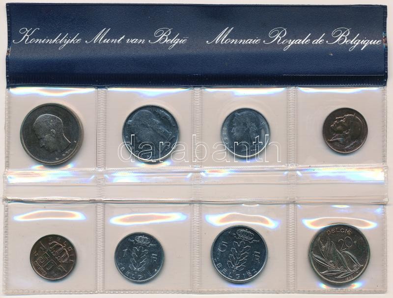 Belgium 1980. 50 Centimes - 20 Francs (8xdiff, 4x "Belgique" 4x "Belgie" ) "Monnaie Royale de Belgique - Koninklijke Munt van België" coin set in original sealed plastic case C:UNC patina