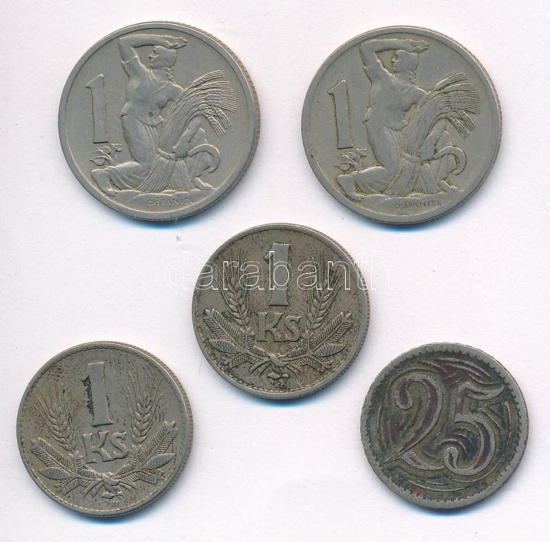 Csehszlovákia / Szlovákia 1922. 1K Cu-Ni (2x) + 1933. 25h Cu-Ni + 1941-1942. 1K Cu-Ni (2xklf) T:2,2-
