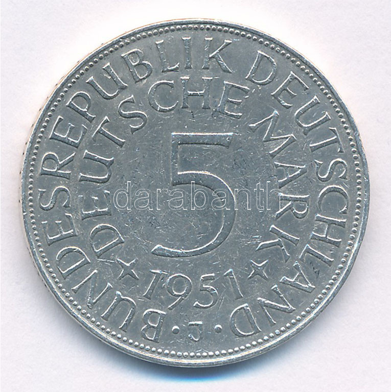 https://www.darabanth.com/en/429-Online-auction/429.0/Numismatics/Worldwide-silver-and-metal-coins~2000015/Nemet-Szovetsegi-Koztarsasag-1951J-5M-Ag-T2-GFR-1951J-5-Mark-Ag-CXF-Krause-KM231121~II2747902