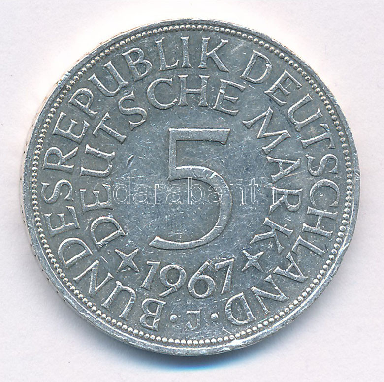 https://www.darabanth.com/en/429-Online-auction/429.0/Numismatics/Worldwide-silver-and-metal-coins~2000015/Nemet-Szovetsegi-Koztarsasag-1967J-5M-Ag-T2-2-GFR-1967J-5-Mark-Ag-CXF-VF-Krause-KM23112~II2747850
