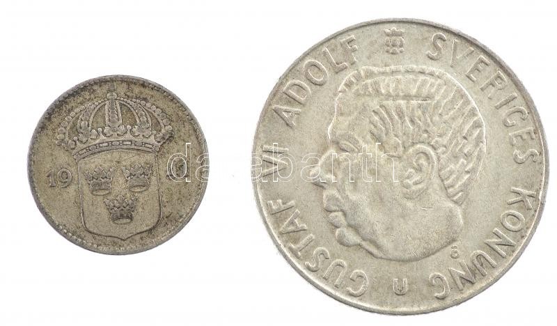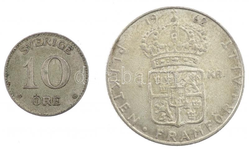 Svédország 1941. 10ö Ag + 1962. 1K Ag "VI. Gusztáv" T:2 patina