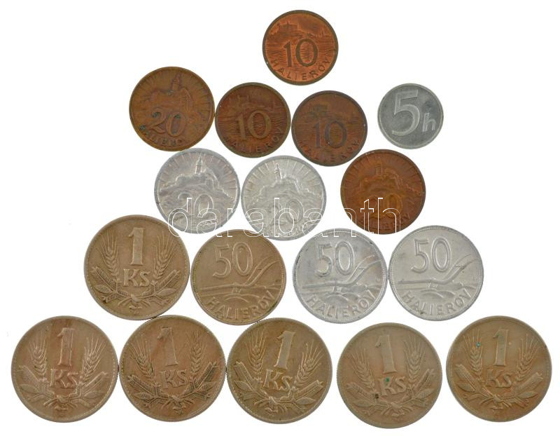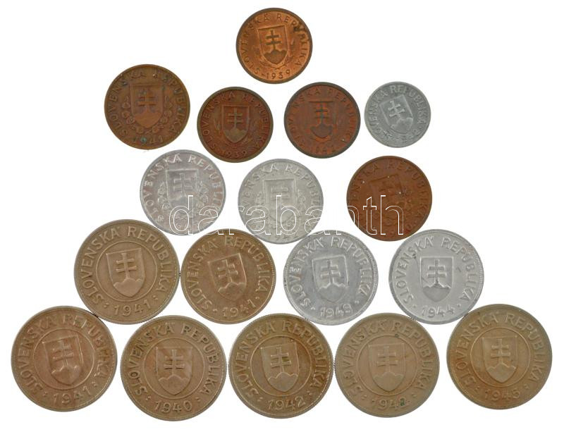 Slovakia 1939-1945. 5 Halierov - 1 Koruna (17pcs, 14xdiff), közte 1942. 5 Halierov Zn + 1944. 50 Halierov Al C:AU-VF