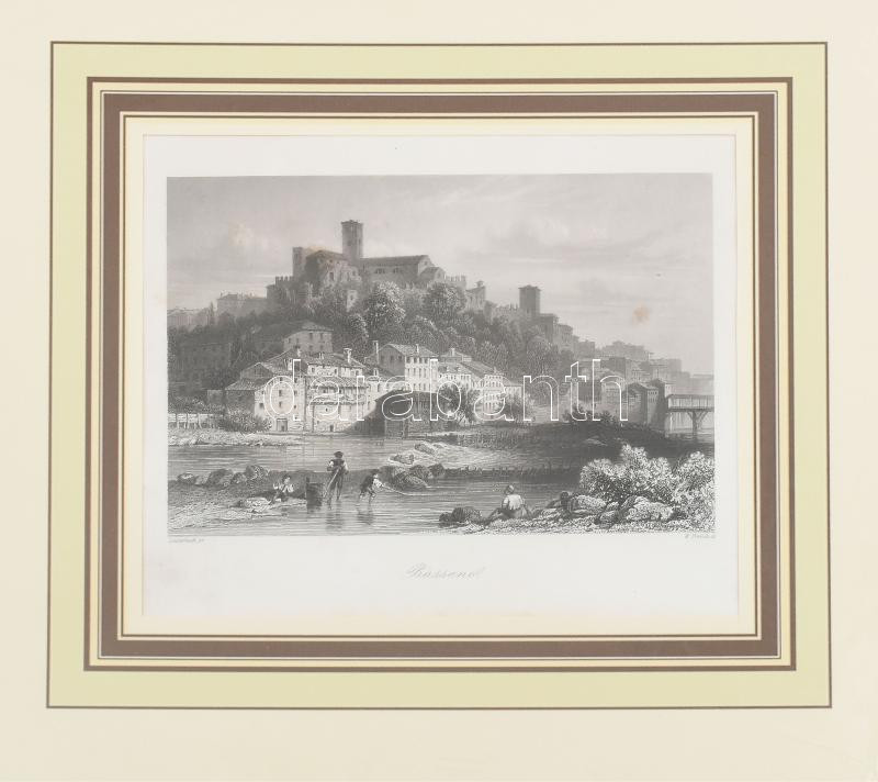 Description: H Lauterbach festménye után, William French (1815-1898) metszése: Bassano. Acélmetszet, papír, jelzett a metszeten. Paszpartuban. Kissé foltos. 14x21 cm.
