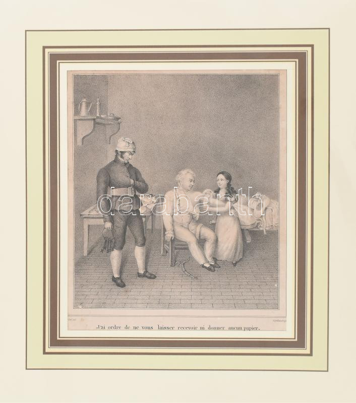 Joseph-Philippe Oorloft (1792-1861) után, V. d. Wildenberg metszése: J'ai ordre de ne vous laisser recevoir ni donner aucun papier. Litográfia, papÃr, jelzett a metszeten, paszpartuban. Kissé foltos. 20,5x17,5 cm.