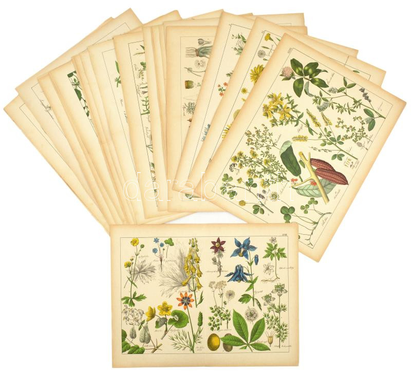 cca 1880 26 db növényeket, gyógynövényeket ábrázoló nagy méretű színez...