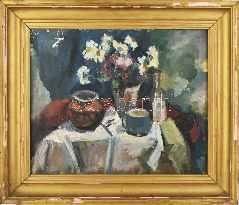 Gera Éva (1923-1996): Asztali csendélet. Olaj, vászon, jelzett, sérült...