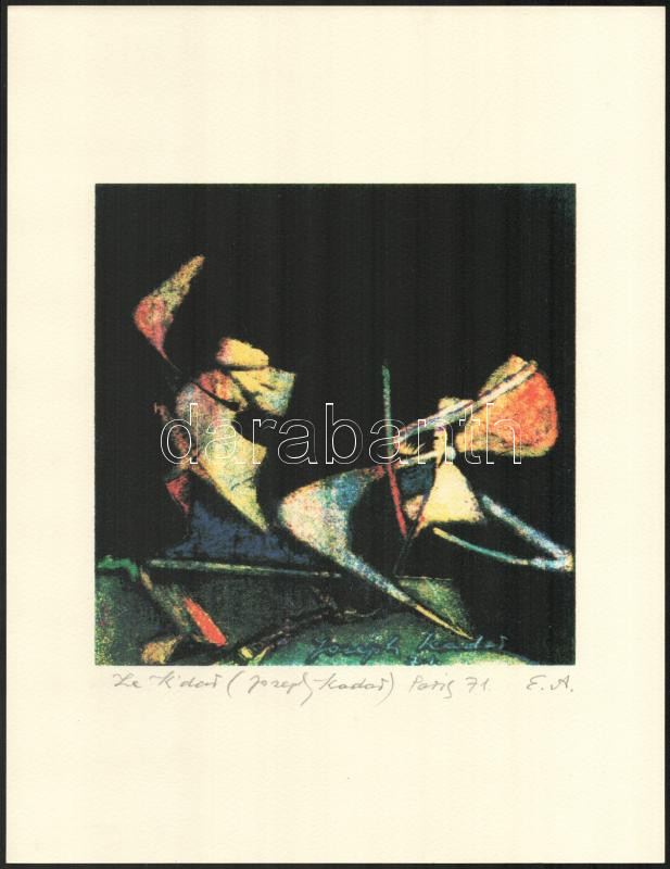 Joseph Kádár (1936-2019): Szürrealista kompozíció, 1971. Elektrográfia, papír, jelzett. Művészpéldány E.A jelzéssel. Hátoldalon a művész pecsétjével. 19,5x19,5 cm / Joseph Kádár (1936-2019): Surrealistic composition, 1971. Electrographic work on paper, signed. E.A. artist's proof. 19,5x19,5 cm