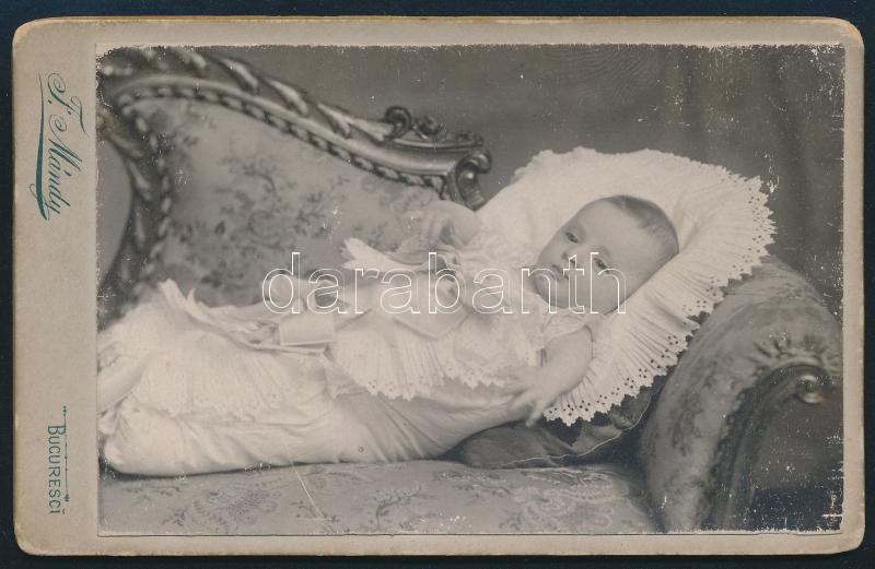 1904 Babaportré, keményhátú fotó Mándy Ferenc bukaresti műterméből, 6,5×10,5 cm