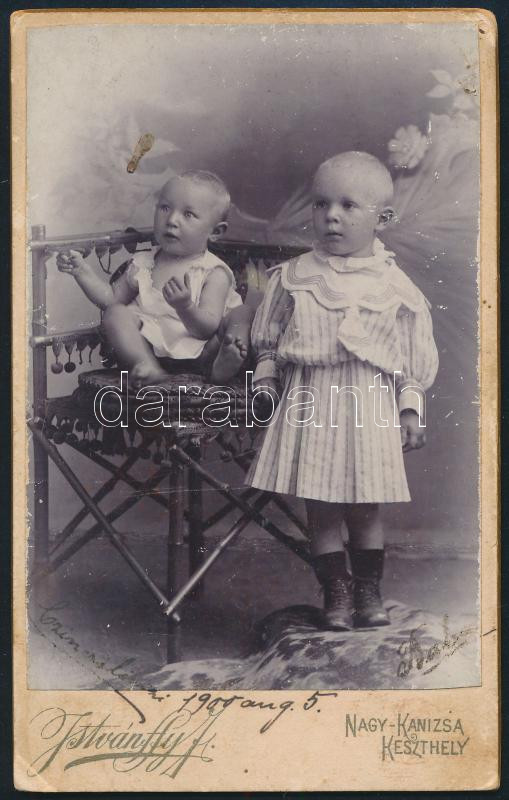 1905 Gyerekek műtermi portréja, keményhátú fotó Istvánffy (Nagykanizsa...