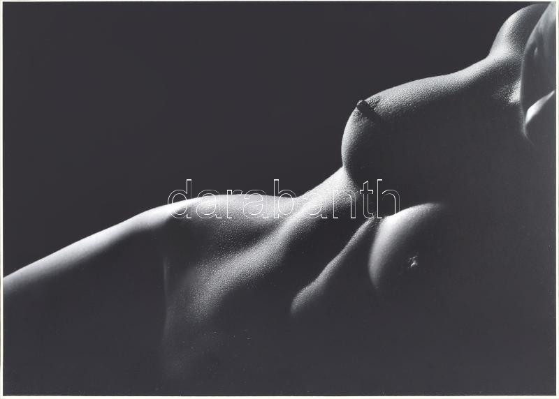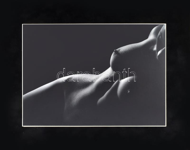 Marácz István (1958- ): Torzó (művészi akt). Professzionális fotópapír, kézi nagyítású, 1/1 nagyítás, bársony paszpartuban, kartonra kasírozva, hátoldalán jelzett, 38x27,5 cm. Marácz István a nyolcvanas évektől végzett művészeti tevékenységet. Neve az összes magyar és számos külföldi képeslapban megtalálható volt. Évekig a Mis Universe Hungary és számos hazai szépségverseny hivatalos fotósa volt. Fotóproducerként dolgozott a Penthouse magazinnál, művészi akt fotói fotói megjelentek a Playboy magazinban is. Több fotóművész könyvet adott ki, az egyik legérdekesebb a Fodor Lengyel Zoltán, Goya díjas festőművésszel közösen készített kiadvány. Egyéni kiadása a Meztelen Fények fotókönyv.