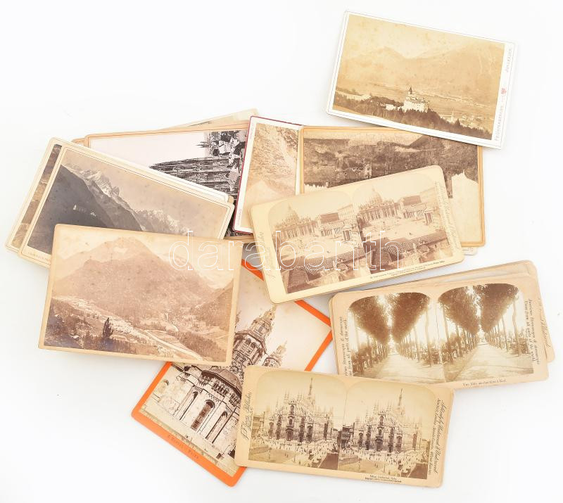 cca 1870-1880 Városképes fotók, 26 db kabinet és 11 db sztereófotó, 9×18 és 11×16,5 cm
