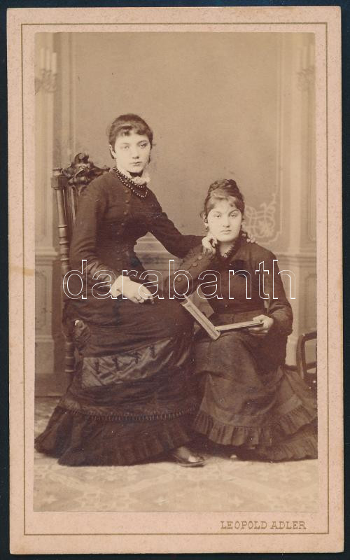 cca 1880 Fiatal lányok portréja, keményhátú fotó Adler Lipót brassói m...