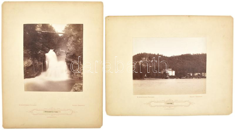 cca 1890 Lusienbad és Rothweinfall, Veldes Oberkrain, 2 db nagy méretű keményhátú fotó, B. Lergetporer fényképész, 30x38 cm
