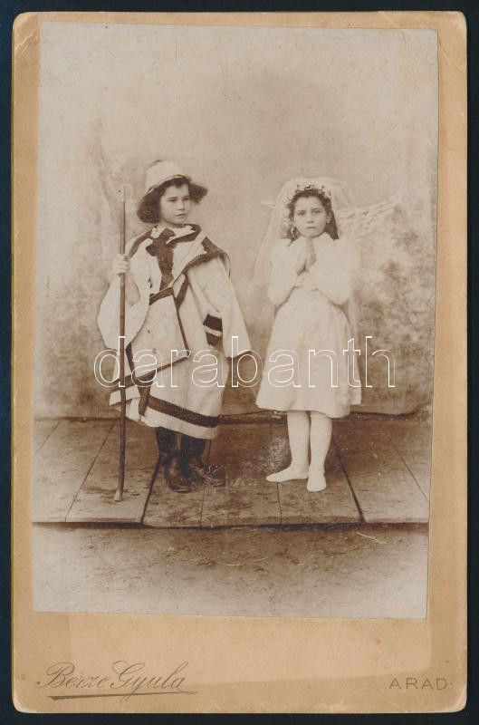 cca 1890 Testvérpár fotója, keményhátú fotó Berze Gyula aradi műterméb...