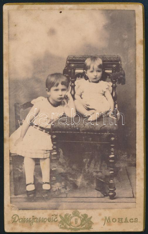 cca 1900 Két gyerek műtermi portréja, keményhátú fotó Damjanovic mohác...