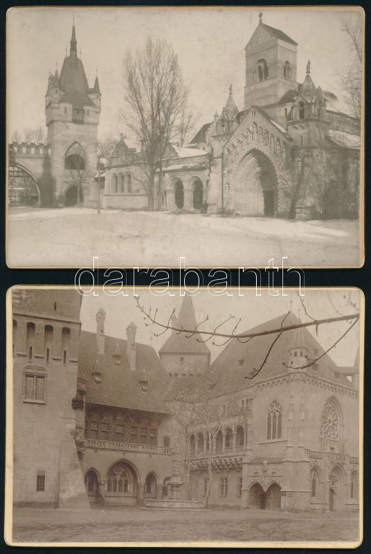 cca 1910 Budapest, 2 db keményhátú vintage fotó a Vajdahunyad várról, ...