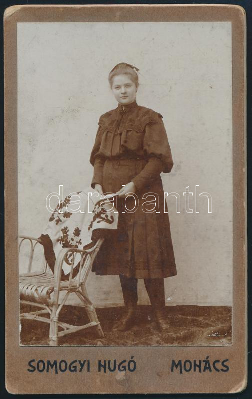 cca 1915 Lány portréja, keményhátú fotó Somogyi Hugó mohácsi műtermébő...