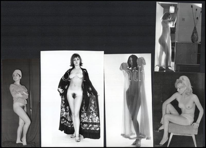 Description: cca 1974 Bevállalós lányokról, asszonyokról készült, szolidan erotikus felvételek, 5 db vintage fotó ezüst zselatinos fotópapíron, 18x12 cm és13x8,5 cm között