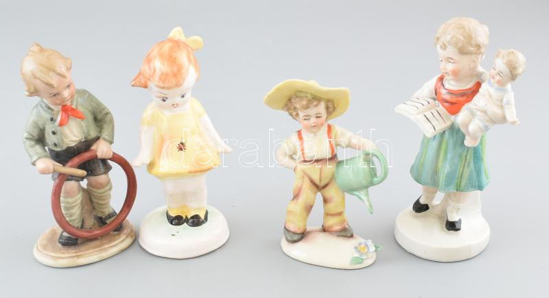 4 db kerámia figura: kislány, kisfiú, jelzés nélkül, minimális kopásokkal 10-15 cm