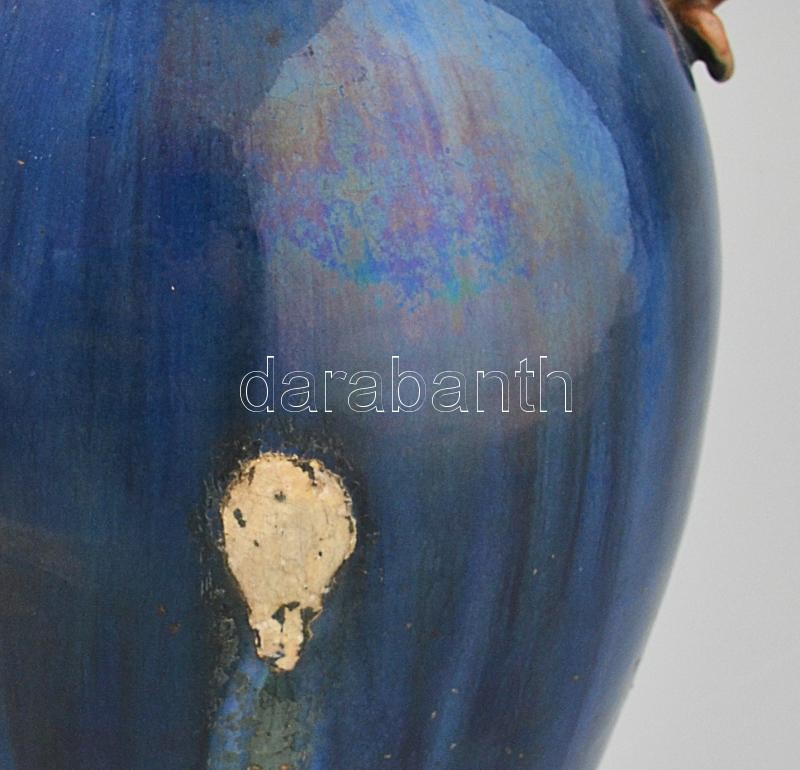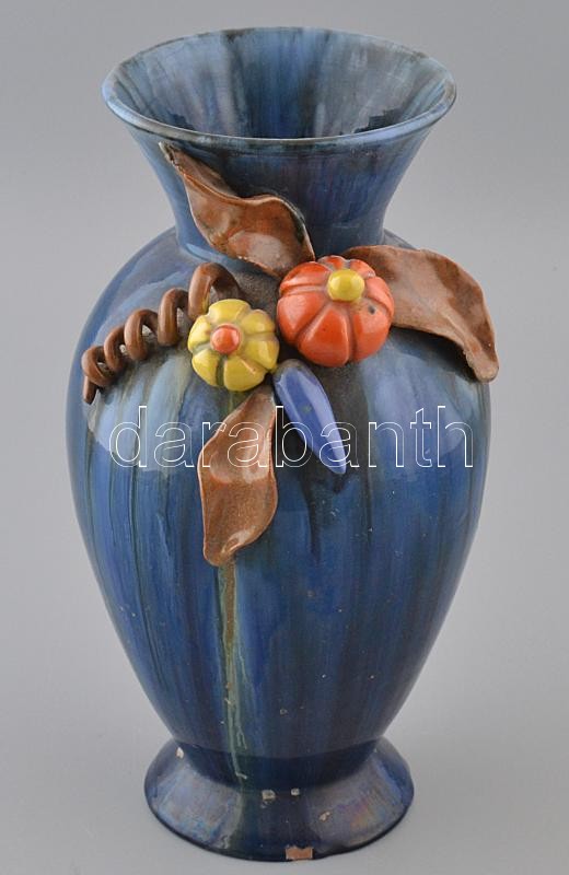 Komlós testvérek Budapest: Váza. Mázas kerámia jelzett, mázhibával, kis lepattanással. m: 31 cm