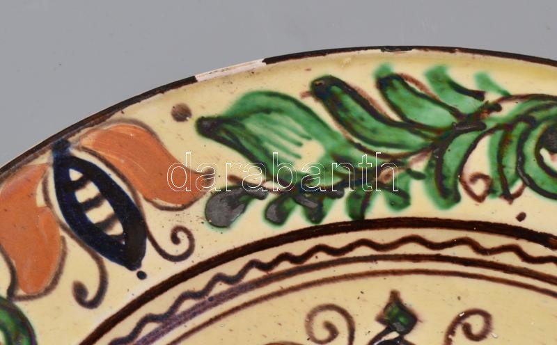 Korondi tál, Máthé Lukács jelzett, apró hibákkal, d:34cm