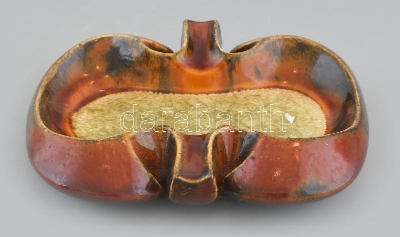 Végvári Gyula retró tálka. Vastag üveg mázas kerámia, jelzés nélkül, h...