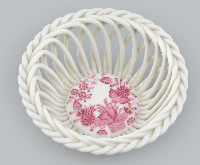 Herendi Indiai kosár mintás fonott porcelán kosárka. Kézzel festett, j...