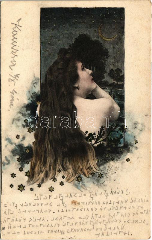 1901 Art Nouveau lady art postcard. ASW Collection "Vlan" No. 223. Fec. Ch. Scolik + titkosírás / cryptography (EK)