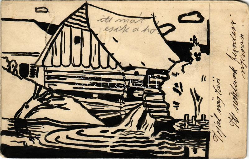 1910 Kézzel rajzolt és készített művészlap / hand-drawn custom-made ar...