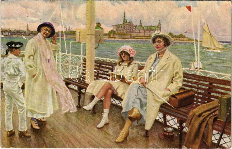 Sommerdag paa Faergen / Ferienzeit / On the Ferryboat. Alex. Vincents Kunstforlag Maleriserie Nr. 81. s: Paul Fischer (kis szakadás / small tear)