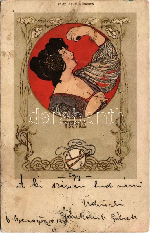 Tanz / Art Nouveau lady. Fritz Rehm (München) Emb. litho (fa)