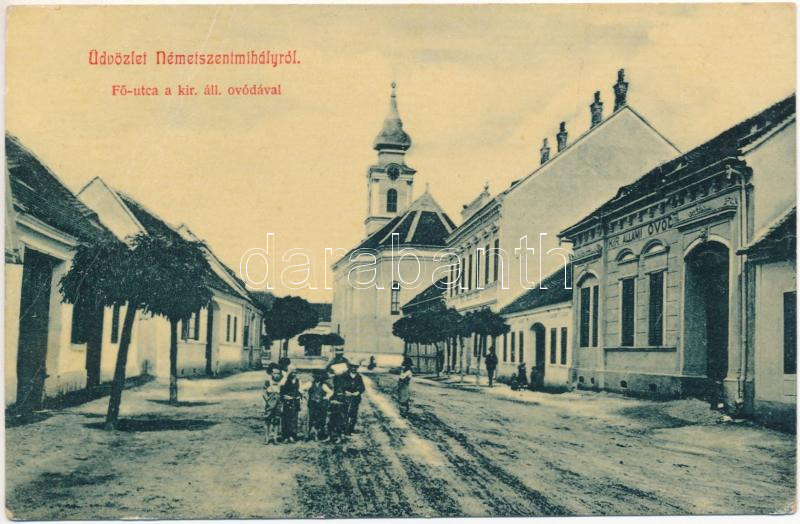 Nagyszentmihály, Németszentmihály, Grosspetersdorf; Fő utca, Kir. állami óvoda. W.L. 2347. / main street, kindergarten (Rb)