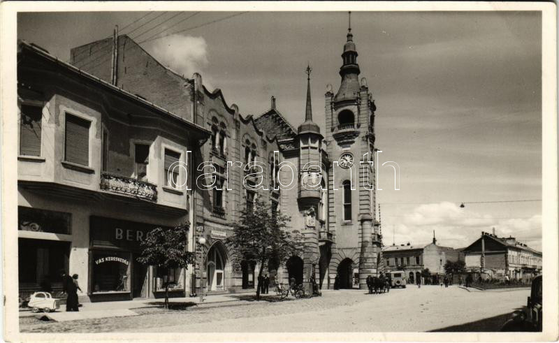 1942 Munkács, Mukacheve, Mukacevo; Városháza, üzletek / town hall, shops