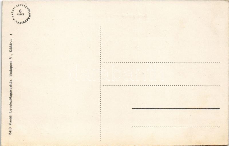 Királyháza, Korolevo, Královo nad Tisou; Pályaudvar, vasútállomás, vonat, csendőr. Vasúti levelezőlapárusítás 6410. / railway station, train, gendarme