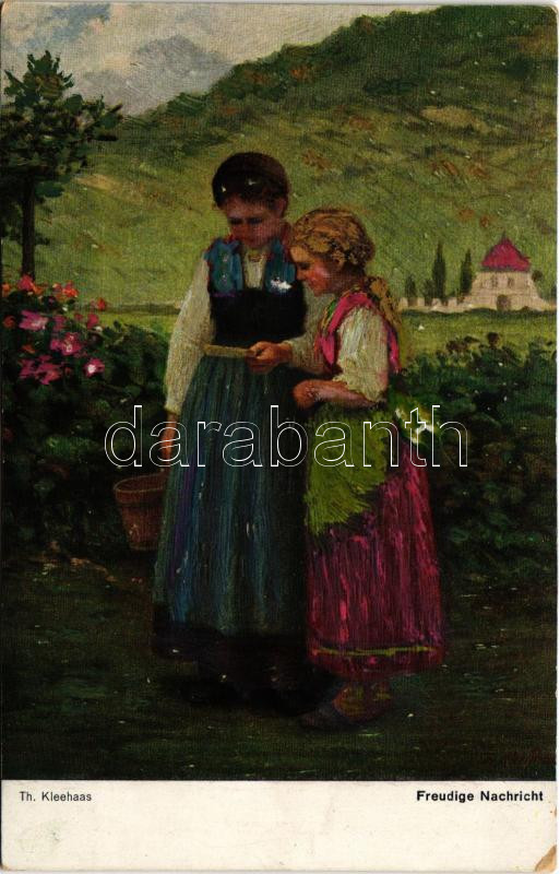 Freudige Nachricht / Children art postcard. Oleoplast-Ölgemälde Nr. 318. s: Th. Kleehaas (EK)